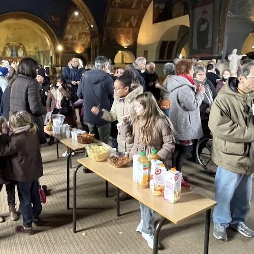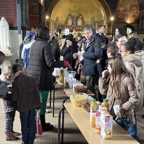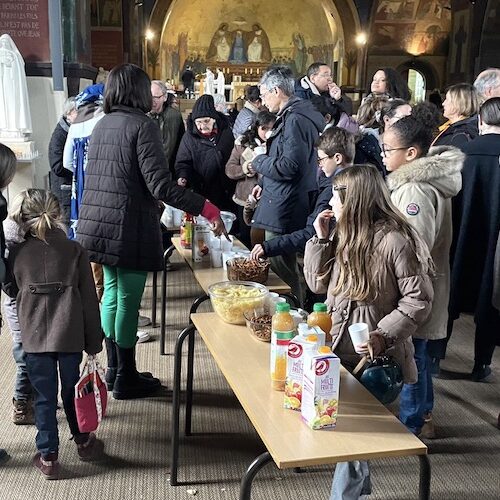 Quelques images de la clôture du concours Imagine Notre Dame, après la messe de 11h, autour du verre de l’amitié (cliquez sur les images pour accéder au carrousel).