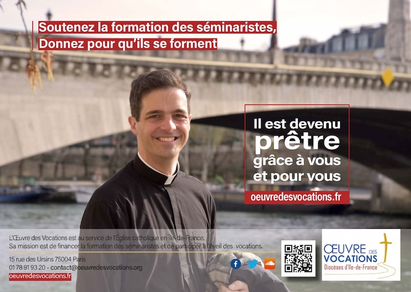 Journée Mondiale de prière pour les vocations. Il y a aujourd’hui en Île-de-France environ 130 séminaristes et jeunes en année de fondation spirituelle et de nombreux jeunes cheminent dans les groupes de réflexion. Chacun d’eux a besoin du soutien par la prière et par le don, pour avancer sur son chemin en toute liberté. La quête de ce jour contribue au financement de la formation des séminaristes et au financement de la pastorale des vocations pour les diocèses d’Île-de-France. La formation d’un séminariste revient à 38 000€ par séminariste et par an et est financée uniquement grâce à la générosité des fidèles. Vous pouvez également envoyer vos dons, déductibles de vos impôts, à : Œuvre des Vocations, 15 rue des Ursins, 75004 Paris ou don en ligne sur https://www.oeuvredesvocations.fr/